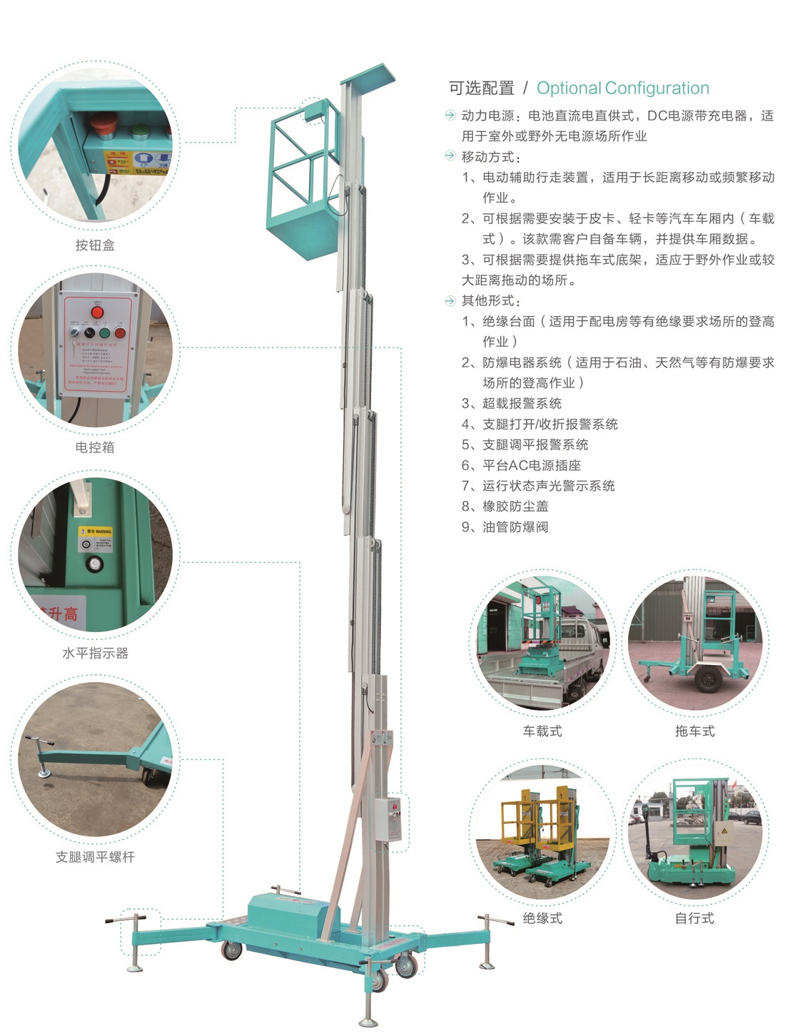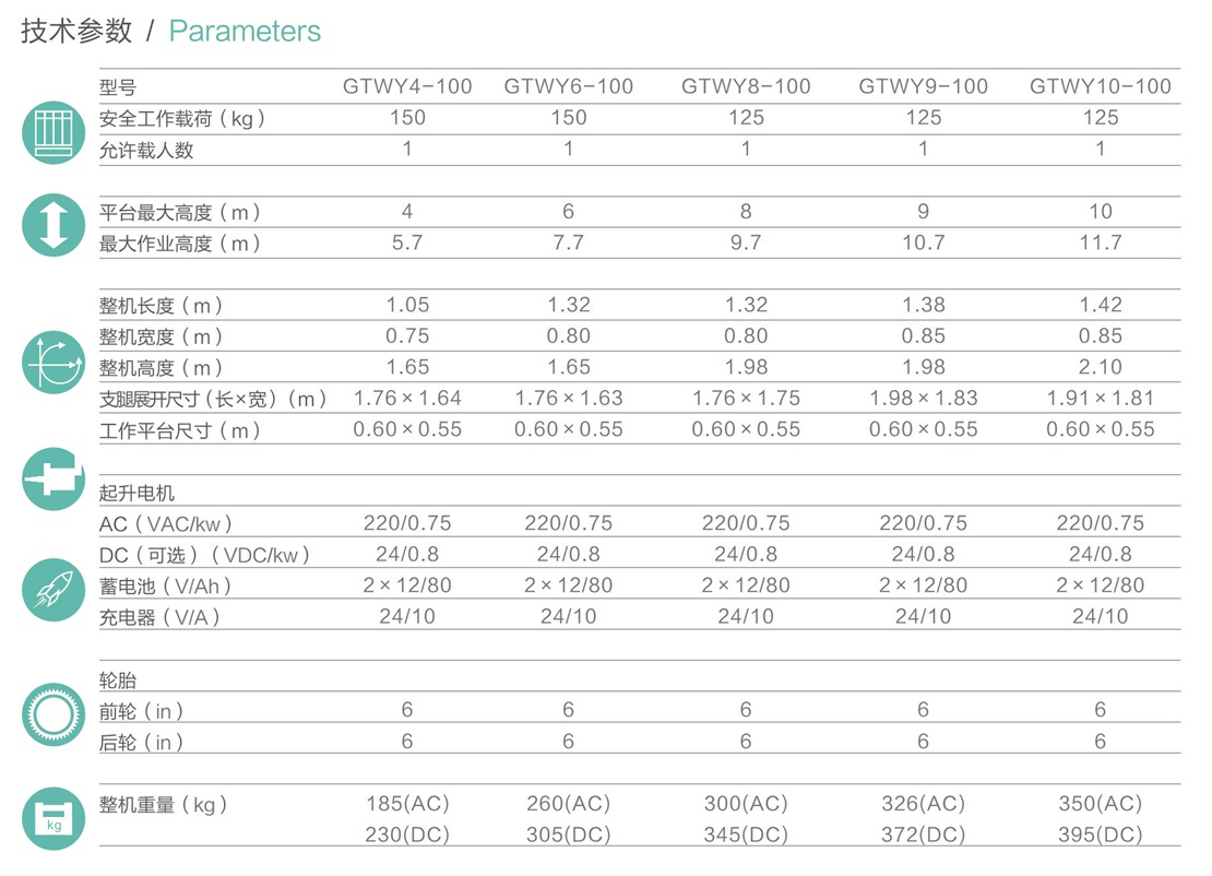 平臺最大高度規格:可選4m、 6m、8m、9m、10m