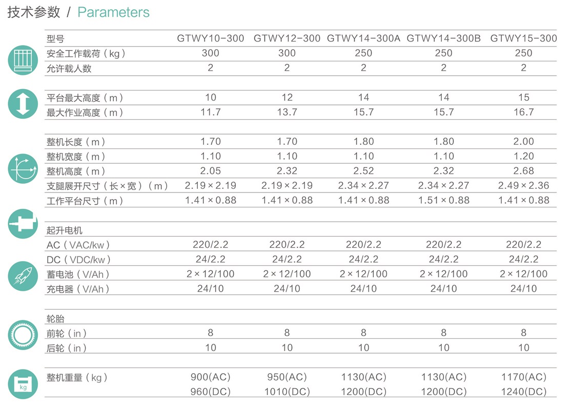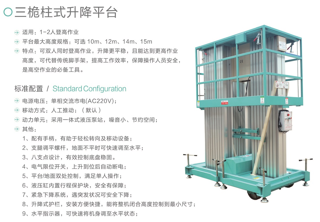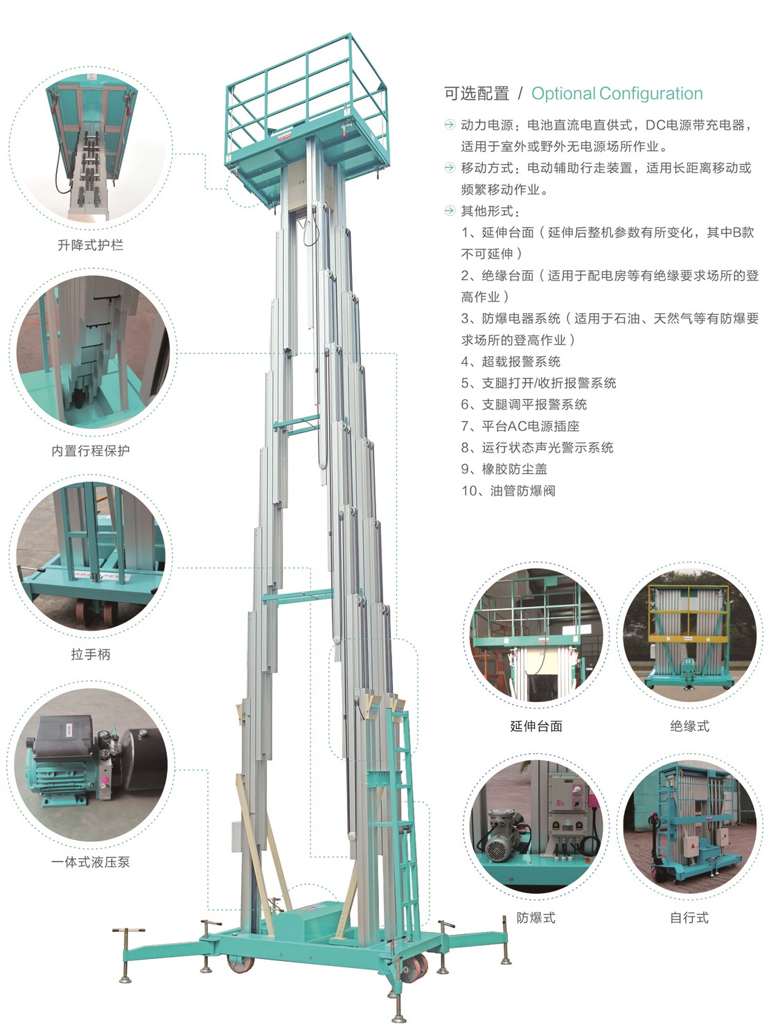 平臺最大高度規(guī)格:可選 10m、12m、14m、15m