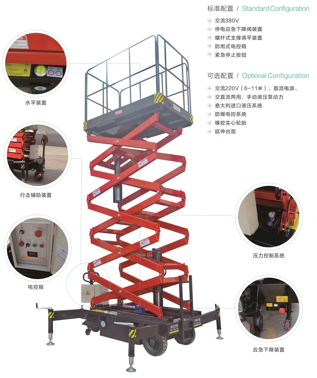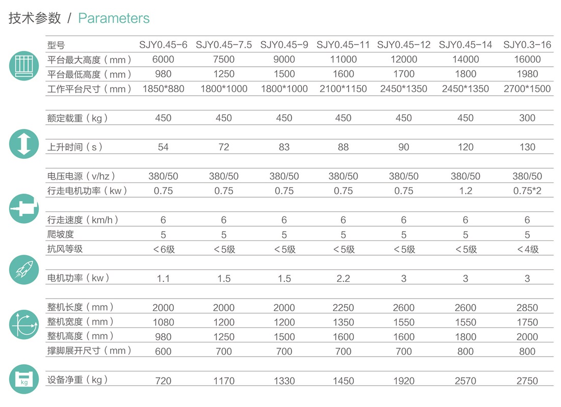 平臺(tái)最大高度規(guī)格:可選6m、7.5m、9m、11m、12m、14m、16m。